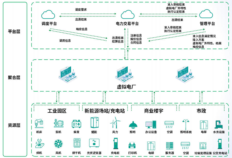 公司是泰州“首家”完成虛擬電廠注冊(cè)的企業(yè),虛擬電廠作為一種智慧能源管理系統(tǒng),被稱為能源產(chǎn)業(yè)鏈的“最后一公里“,其核心是將分布式的發(fā)電設(shè)備、儲(chǔ)能系統(tǒng)、電動(dòng)汽車、可調(diào)節(jié)負(fù)荷等資源聚合起來(lái),通過(guò)智能算法和通信技術(shù)統(tǒng)一調(diào)度,使其能夠像傳統(tǒng)發(fā)電廠一樣參與電力市場(chǎng)交易或響應(yīng)電網(wǎng)需求,從宏觀層面上,實(shí)現(xiàn)能源的高效利用和電網(wǎng)穩(wěn)定運(yùn)行。