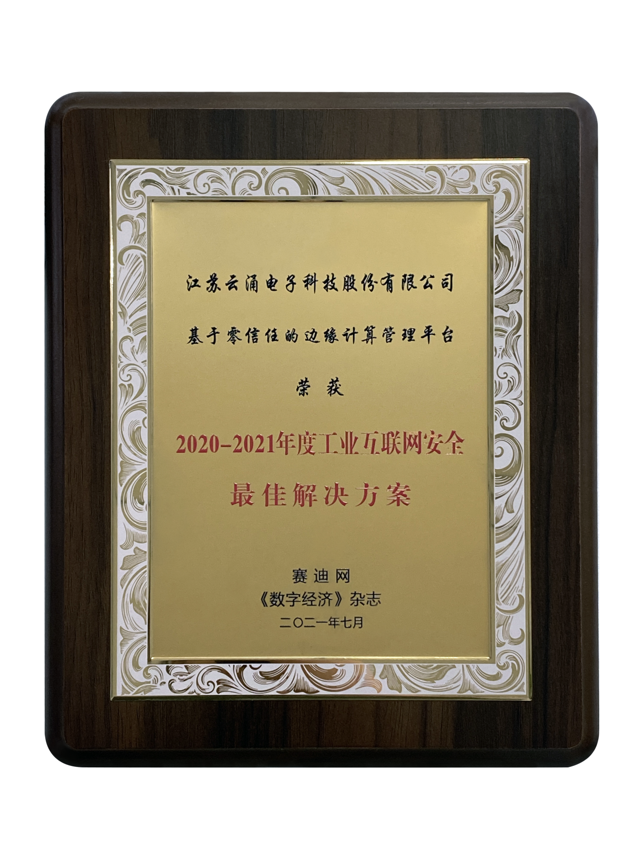 云涌科技基于零信任的邊緣計(jì)算管理平臺(tái)榮獲“2020-2021年度工業(yè)互聯(lián)網(wǎng)安全解決方案”的稱譽(yù)。