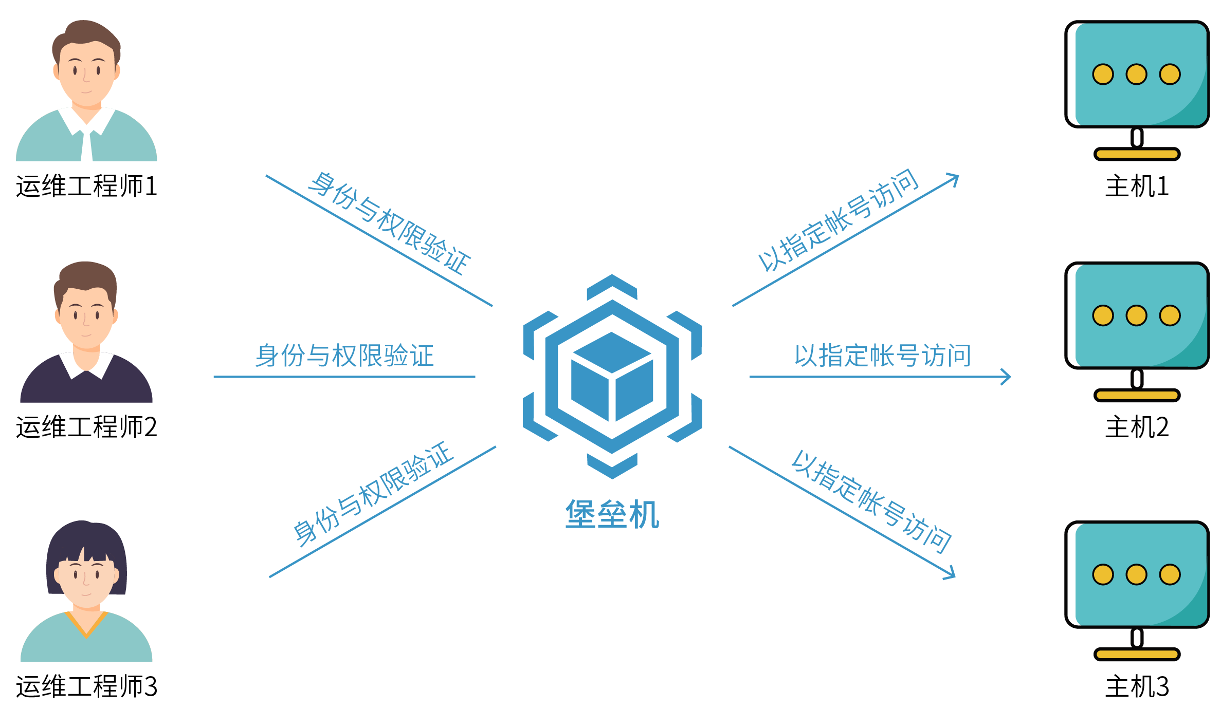 2.維護(hù)人員的權(quán)限無(wú)法基于最小權(quán)限分配原則管理,難以實(shí)現(xiàn)更細(xì)粒度的命令級(jí)權(quán)限控制,不同背景運(yùn)維人員的行為給信息系統(tǒng)安全帶來(lái)較大風(fēng)險(xiǎn),系統(tǒng)安全性無(wú)法充分保證;