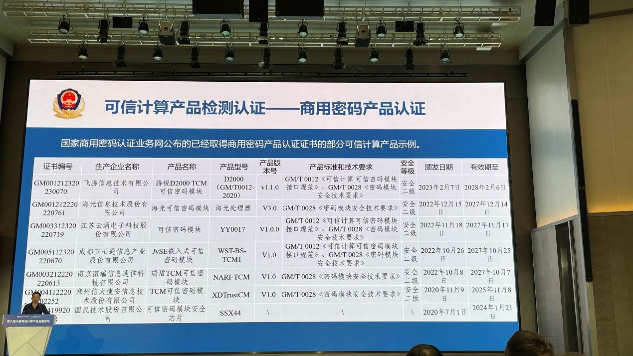 云涌科技副總裁高淵先生全程參與本次論壇會議,并作為企業(yè)代表上臺領(lǐng)獎。云涌可信密碼模塊YY0017作為已取得商用密碼產(chǎn)品認(rèn)證證書的可信計算產(chǎn)品示例在會議現(xiàn)場被提及,并獲得了現(xiàn)場領(lǐng)導(dǎo)和專家們的一致肯定。