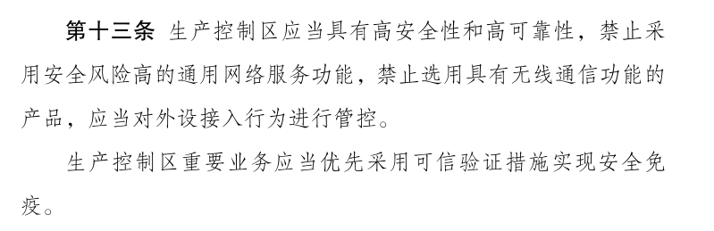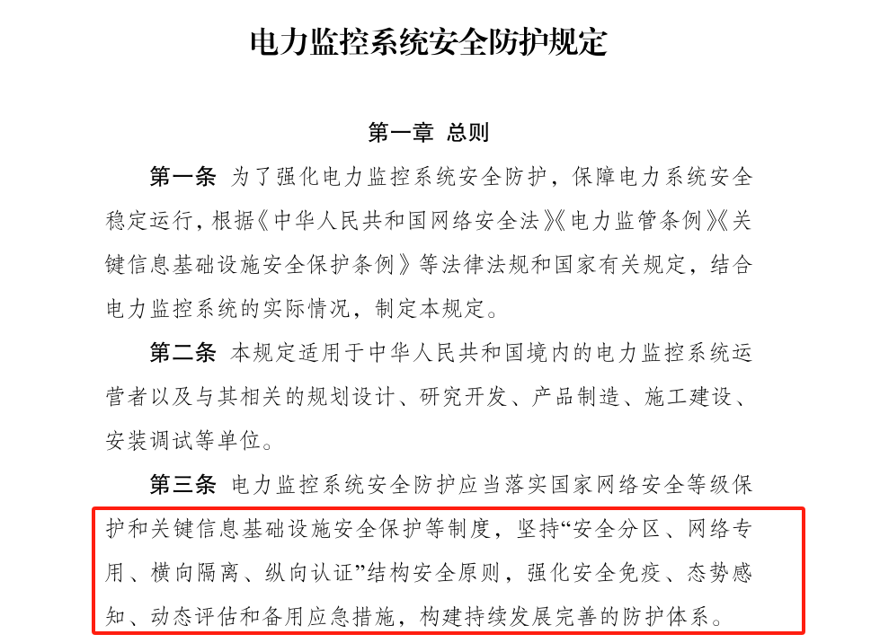 ? ? ? 第十三條明確提到:生產(chǎn)控制要業(yè)務(wù)應(yīng)當(dāng)優(yōu)先采用可信驗證措施實現(xiàn)安全免疫,第十六條明確提到:電力監(jiān)控系統(tǒng)優(yōu)先選用安全可信的產(chǎn)品和服務(wù),電力監(jiān)控系統(tǒng)投運前應(yīng)當(dāng)進(jìn)行安全加固,包括主機加固、系統(tǒng)加固等。