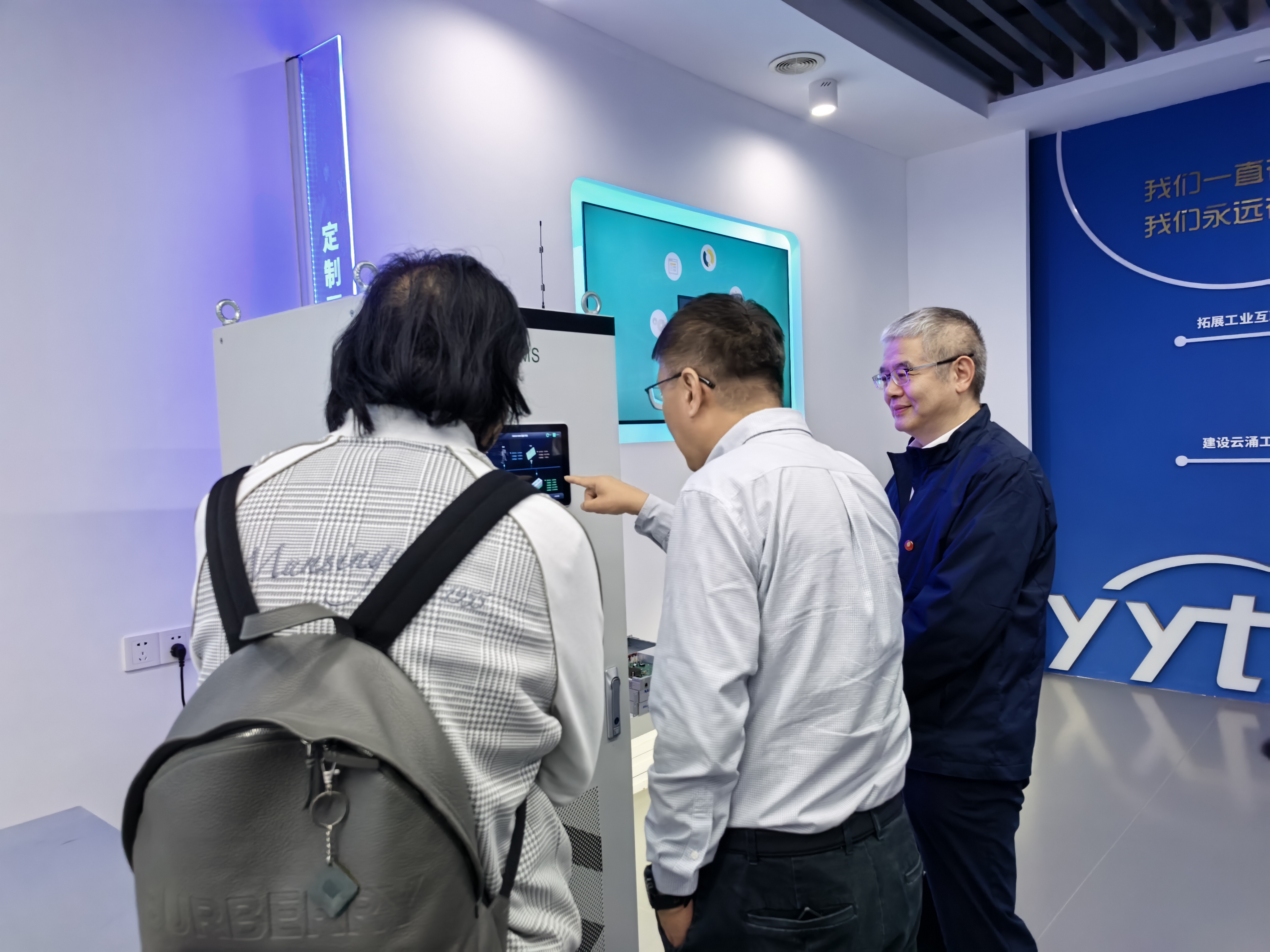 考察期間,胡偉武董事長一行先后走訪了云涌科技展廳、實驗驗證中心及制造中心,實地察看智能料倉、SMT 貼片、DIP 插件、整機組裝與成品測試等全流程生產(chǎn)環(huán)節(jié)。在制造中心,詳細(xì)了解了公司的生產(chǎn)調(diào)度體系、質(zhì)量管控標(biāo)準(zhǔn)及工廠信息化建設(shè)情況,對云涌科技在硬件制造領(lǐng)域的規(guī)范化管理與技術(shù)實力給予高度評價,尤其贊賞了公司在生產(chǎn)效率、質(zhì)量把控及數(shù)字化轉(zhuǎn)型方面取得的顯著成效。