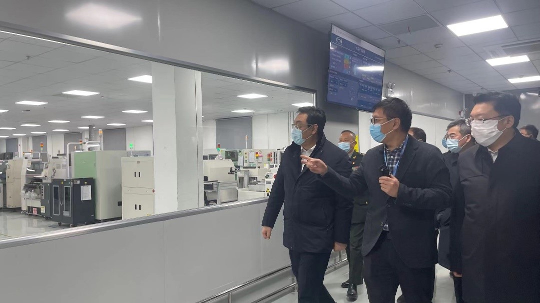 ? ? ? 隨后,朱書記等一行領(lǐng)導(dǎo)走進(jìn)我司智能制造車間進(jìn)行考察,高總重點(diǎn)介紹了公司SMT智能化生產(chǎn)線、“5G+AGV”搬運(yùn)機(jī)器人場(chǎng)景應(yīng)用等智能車間運(yùn)行的情況。朱書記對(duì)公司的發(fā)展以及制造中心的智能化水平給予了充分的肯定,并鼓勵(lì)公司借力資本市場(chǎng),繼續(xù)推進(jìn)科技創(chuàng)新,實(shí)現(xiàn)產(chǎn)品的高價(jià)值、高顏值、高效率,促進(jìn)云涌科技高質(zhì)量發(fā)展。