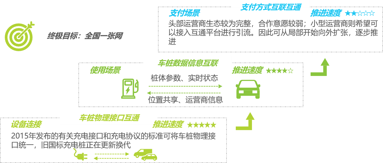 互聯(lián)互通成為行業(yè)共識:由于利益分配問題支付互通短期內阻礙較大,行業(yè)實現(xiàn)電動汽車、充電樁、運營商三方之間的互聯(lián)互通,可有效解決這一難題,通過信息數(shù)據(jù)的分析充分提高單樁充電設施的利用效率。