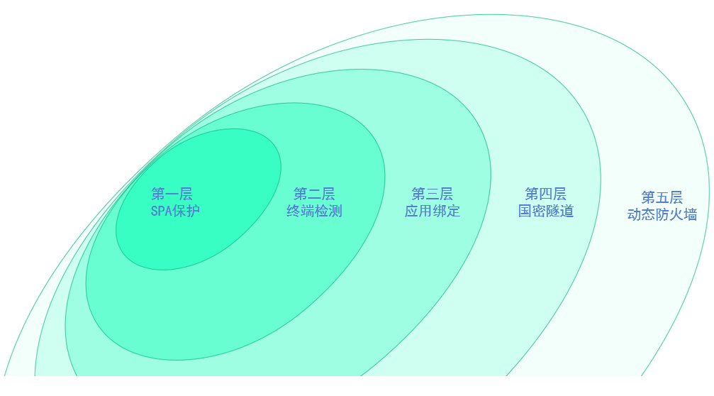 ? ? ? 首先,系統(tǒng)整體設(shè)計(jì)采用了零信任SDP架構(gòu),通過五層安全防護(hù)來實(shí)現(xiàn):
